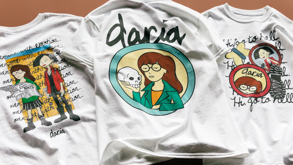 From left to right: American Thrift X Daria Sick Sad World Vintage T-Shirt, American Thrift X Daria Trent Lane Vintage T-Shirt, American Thrift X Daria Daria Premium Vintage T-Shirt