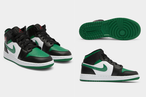 JORDAN - KIDS AIR JORDAN 1 MID (GS) - BLACK/GREEN/WHITE