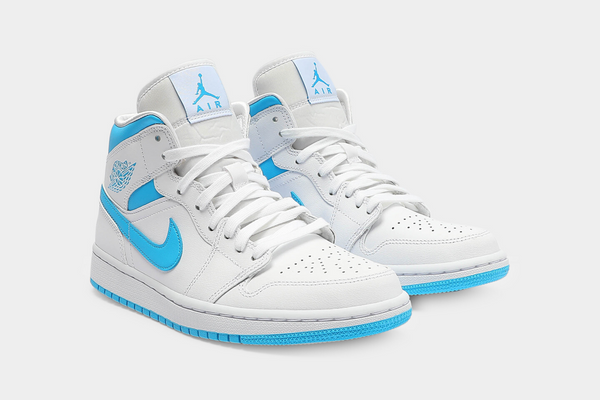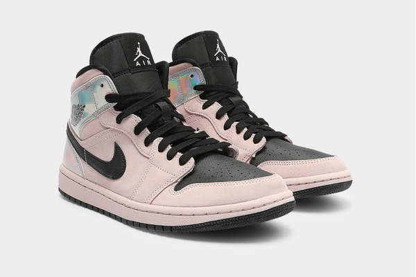 The new Jordan 1 Mid now also comes in a new "Iridescent" colourway exclusive to women, featuring smooth leather overlays and finished signature Jordan branding and Nike Swoosh.