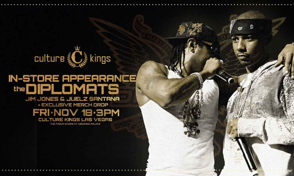 So this Friday, 11/18 @ 3PM-4PM, get on down to Culture Kings Las Vegas where we will be hosting Julez Santana and Jim Jones for an in-store appearance + the official release of their world - exclusive Diplomats Empire x Culture Kings Merch collection!