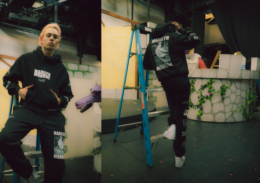 One of the hero pieces of the collection, the Bold is Beautiful Hoodie, encapsulates the mission of the collaboration, to balance the masculinity of Carré’s streetwear aesthetic with the beauty and femininity of Marilyn’s imagery.