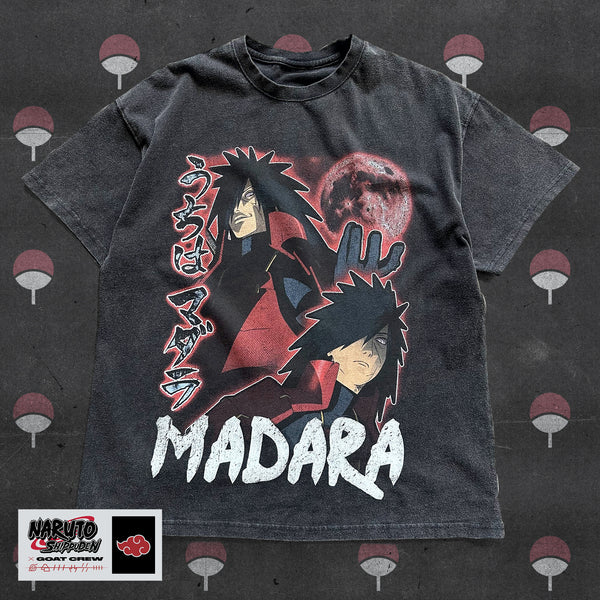 Madara, however, rewrote his death and went into hiding to work on his own plans. Unable to complete it in his natural life, he entrusted his knowledge and plans to Obito shortly before his actual death. So maybe if your a real one you cop the Obitio and Madara Tee to show you are the ultimate fan!