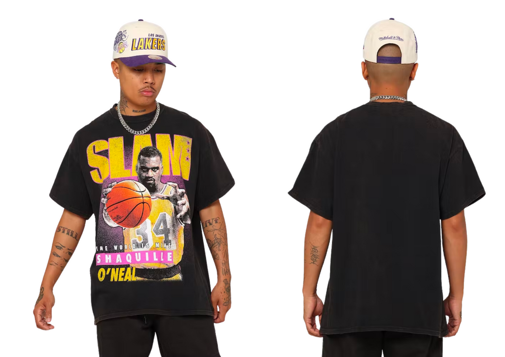 Goat Crew pairs up with the iconic Slam magazine and Shaq, with this tee featuring his 1999 Slam cover! The garment features Shaq when he was on the La Lakers, where he tore up the league with the late Kobe Bryant! Check it out