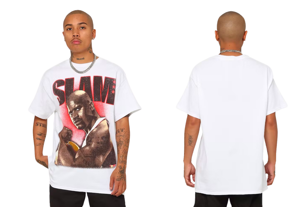 The Staunch Shaquille O'Neal T-Shirt celebrates the living legend, with his 2001 Slam 54 Cover, with the man flexing his dominance over the league!