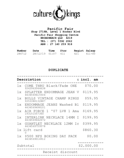 Other merch Jauz picked up was a pair of Quay Come Thru Sunnies in Black/Fade, Carré Splatter Endommage Jeans in Washed Black, perfect for summer wear with heavy distressing and light-washed colours, Nike Air Force 1s in Amarillo and White, as well as a Saint Morta Interlink Necklace, 20” Iced White Gold and a select few other items, all available under the online collection we’ve created found here. Photos from the appearance can also be found here.